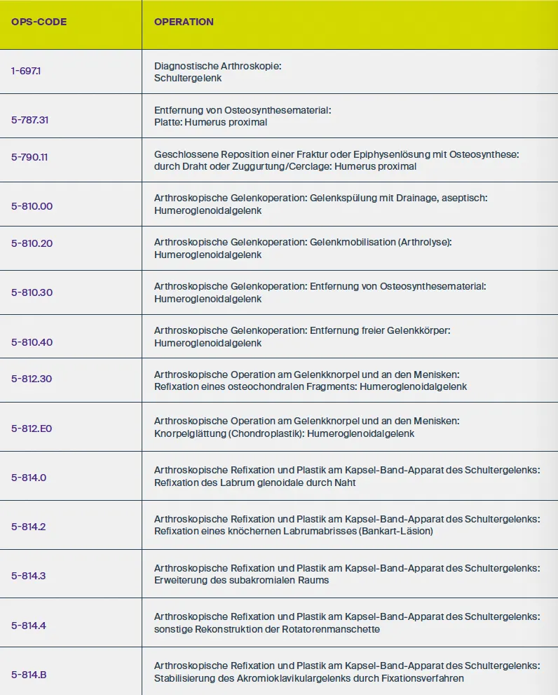 Einen Überblick über ambulant durchzuführende Schulteroperationen nach AOP-Katalog 2024 bietet Tabelle 1 [1].