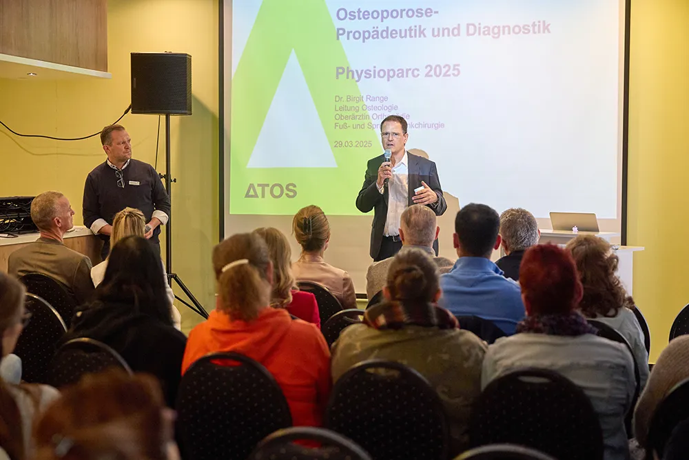 Über 90 physiotherapeutische Kollegen aus ganz Deutschland und diesmal auch aus Luxemburg waren Ende März in der ATOS Orthoparc Klinik zum jährlichen Symposium zu Gast. Passend zu den länger werdenden Tagen widmete sich der PHYSIOPARC 2025 der Volkskrankheit Osteoporose unter besonderer Berücksichtigung physiotherapeutischer Aspekte.