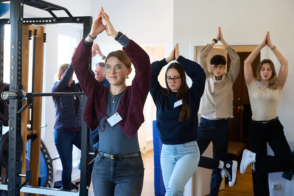 Marliese Stein, Generationen-Managerin vom Turnerkreis Nippes 1903 e. V., präsentierte mit ausreichend Infomaterial in ihrem praxis- und bewegungsbetonten Workshop „Sturzprophylaxe im Veedel“ eine Übungseinheit aus dem alltäglichen therapeutischen Leben. Wie es sich für Physiotherapeuten gehört, waren alle froh, nach dem sitzenden Vormittag hier ihre Muskeln und Gelenke wieder einsetzen zu können (Abb. 3).