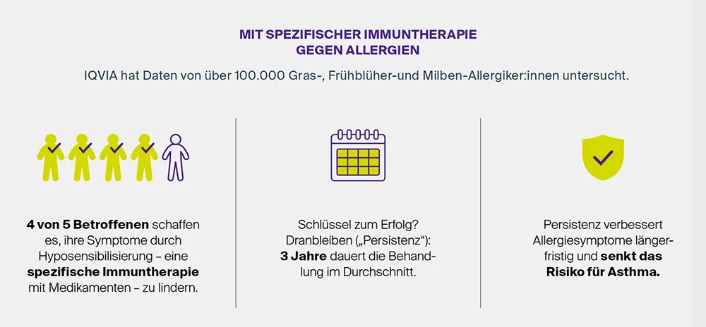 Eine frühzeitige Diagnostik bei Verdacht auf Allergie ist wichtig. Das ist bereits vor dem Kindergartenalter möglich mit einem Fingerpieks. Eine konsequente Therapie kann nicht nur Symptome lindern, sondern es ist entscheidend, dass auch die Ursache der Allergie behandelt wird. Viele Immuntherapien sind heute sehr effektiv – die Einnahme einer täglichen Tablette reicht oft bereits aus. Selbst schwere, bislang kaum therapierbare Folgeerkrankungen können durch Antikörper und Biologika erfolgreich behandelt werden. Die Prävention lebenslanger Einschränkungen der Patienten wird durch die vertrauensvolle, enge Zusammenarbeit zwischen Familien und allergologisch geschulten Kinderärzten ermöglicht.